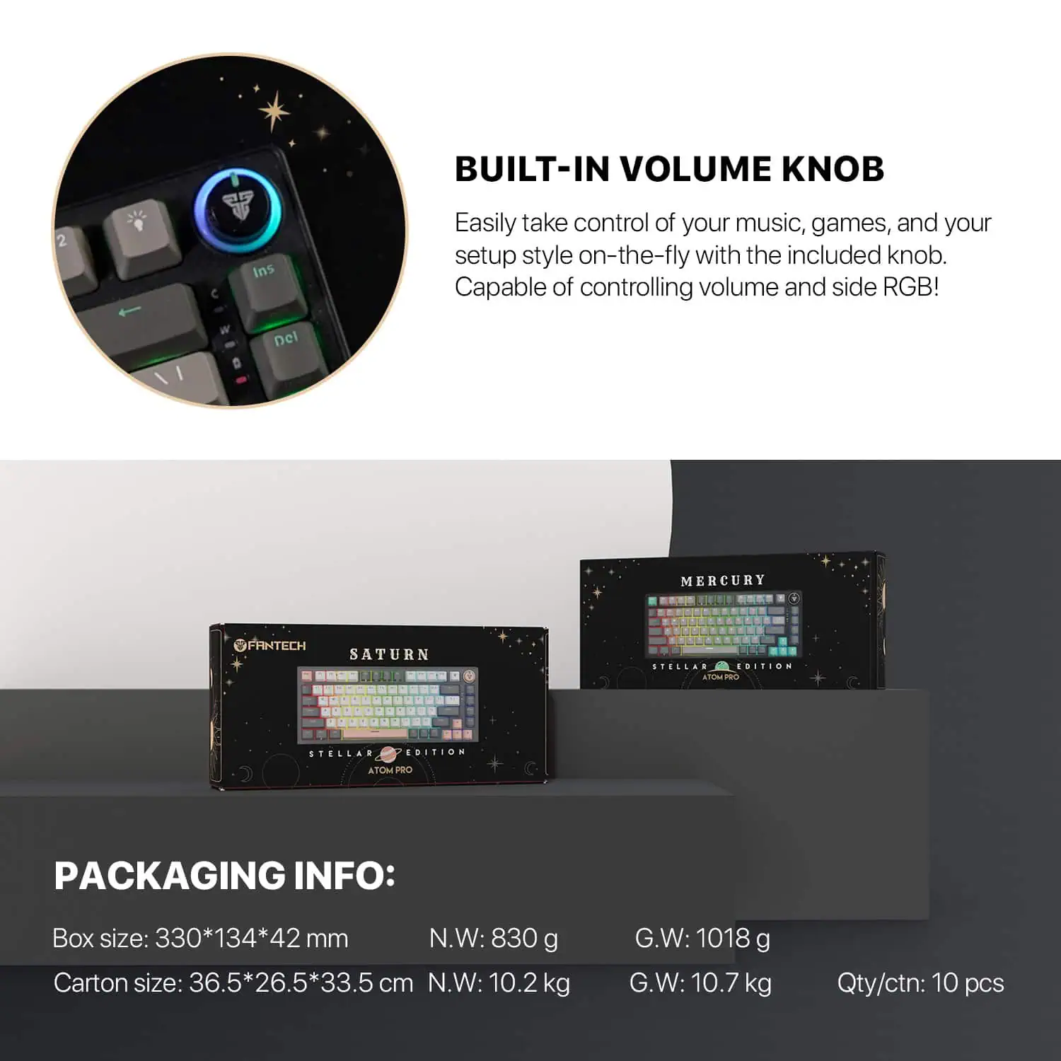 FANTECH ATOM PRO63 MK912 Tri-Mode (BT / 2.4Gha / Wired) 60% Mechanical Gaming Keyboard – Hot Swap Blue Switches | Black
