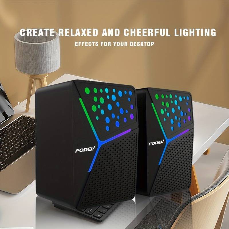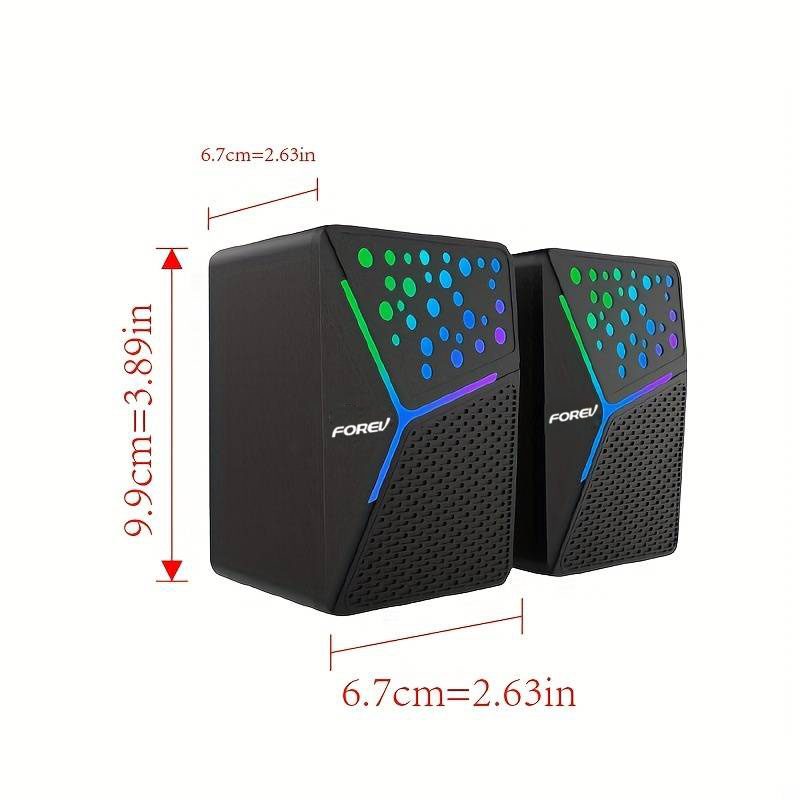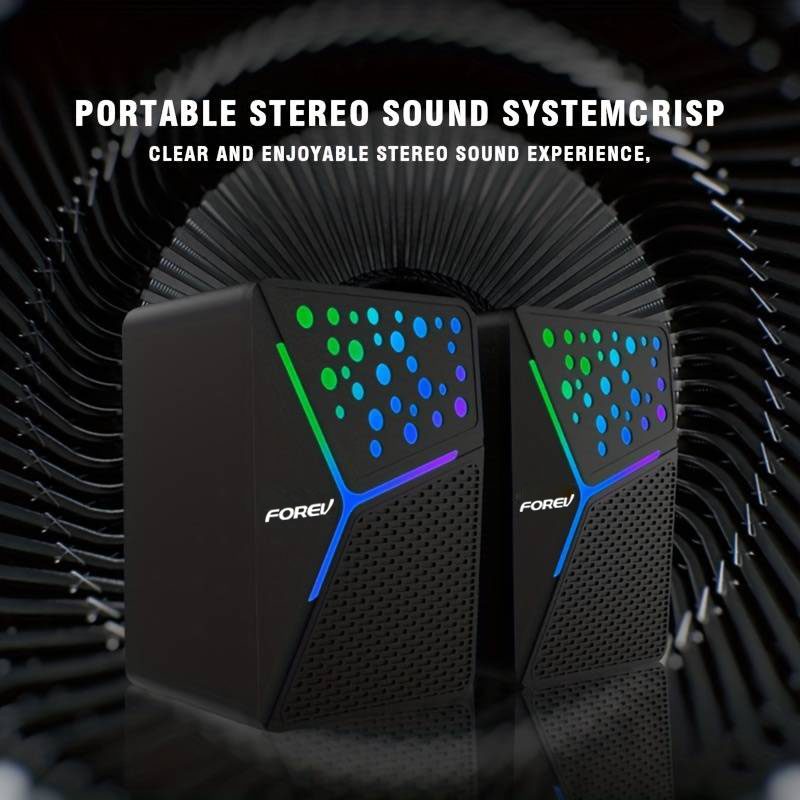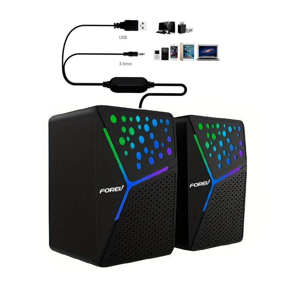 Forev FV-206 Speaker RGB Multimedia 2.0 Channel speaker ,3W*2 Mini Wired speaker USB 2.0 Power + 3.5 mm audio plug ,Stereo LED Music for computer and Laptop , Mobile | Black