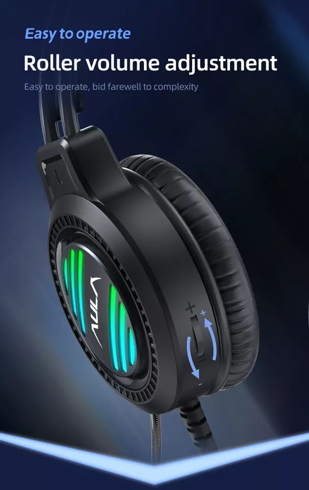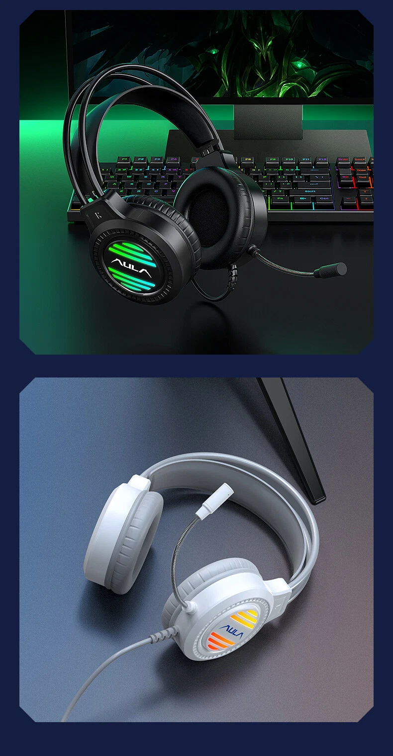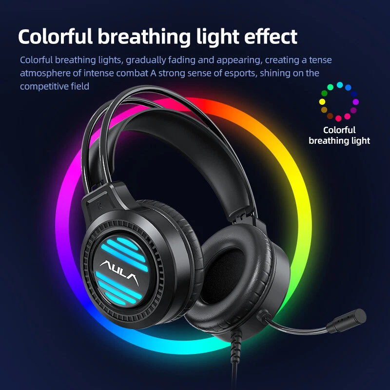 Aula S606 Gaming Headset USB 7.1 Surround Sound -RGB Colorful Lighting Effect – Skin friendly and Breathable – Flixable Noise Reduction Mic – 50mm Drivers – For PC & PS4 | Black