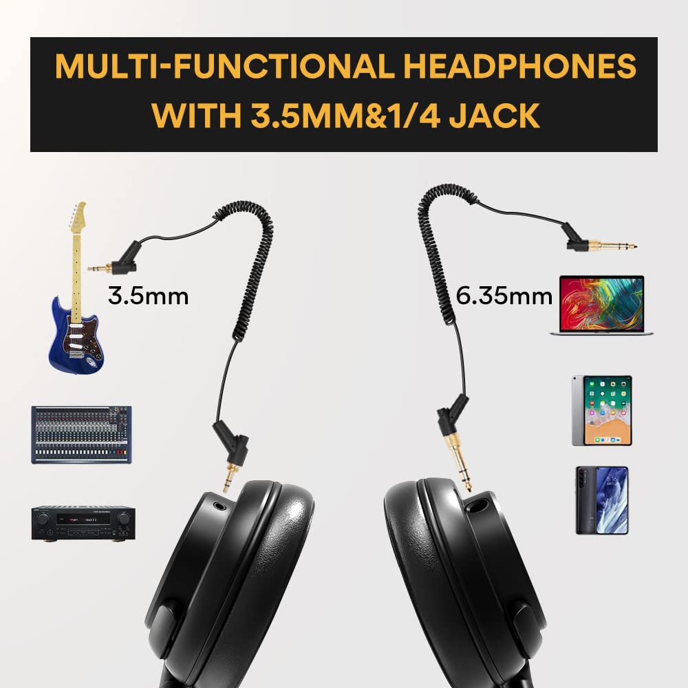 - PACKAGE LIST AND RELIABLE WARRANTY: Headphones+Detachable 9.8ft coiled cable+3.5mm to 6.35mm Adapter*2+Instruction manual.