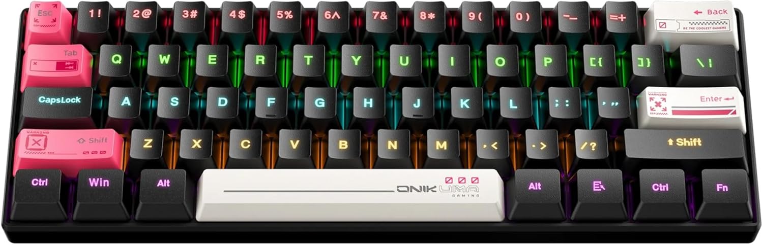 Onikuma G55 60% Gaming Mechanical Keyboard – BROWN Switches – Rainbow – AR / EN keys | Black