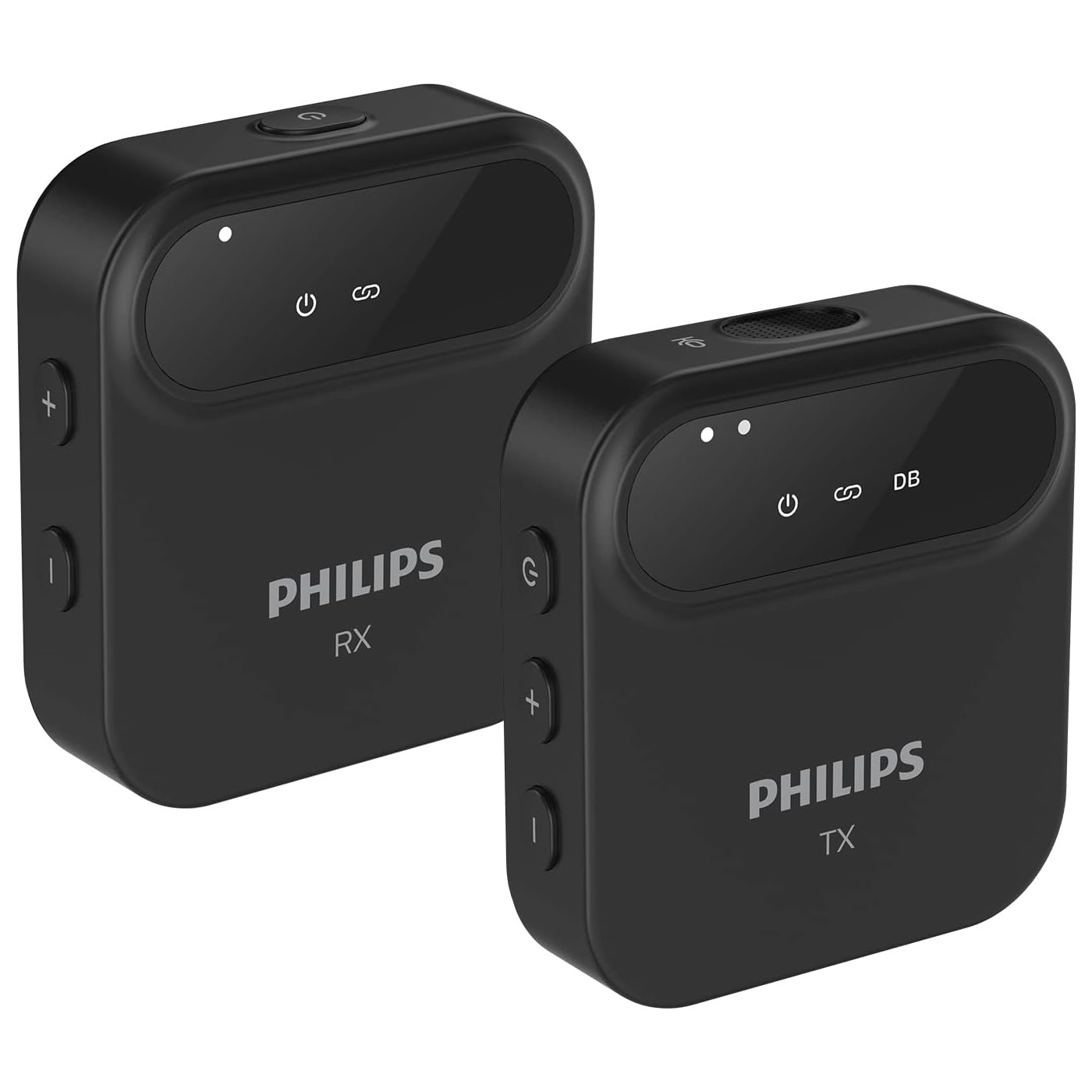 Philips 2.4 GHz Wireless Microphone, 360° Sound Collecting, Pin Microphone, 50m Ultra Long Distance Transmission, DSP Noise Canceling, 8 Hours of Usage Time & LCD Display 250 mAh battery , Automatic Pairing, Monitoring Function, DLM3538C | Black