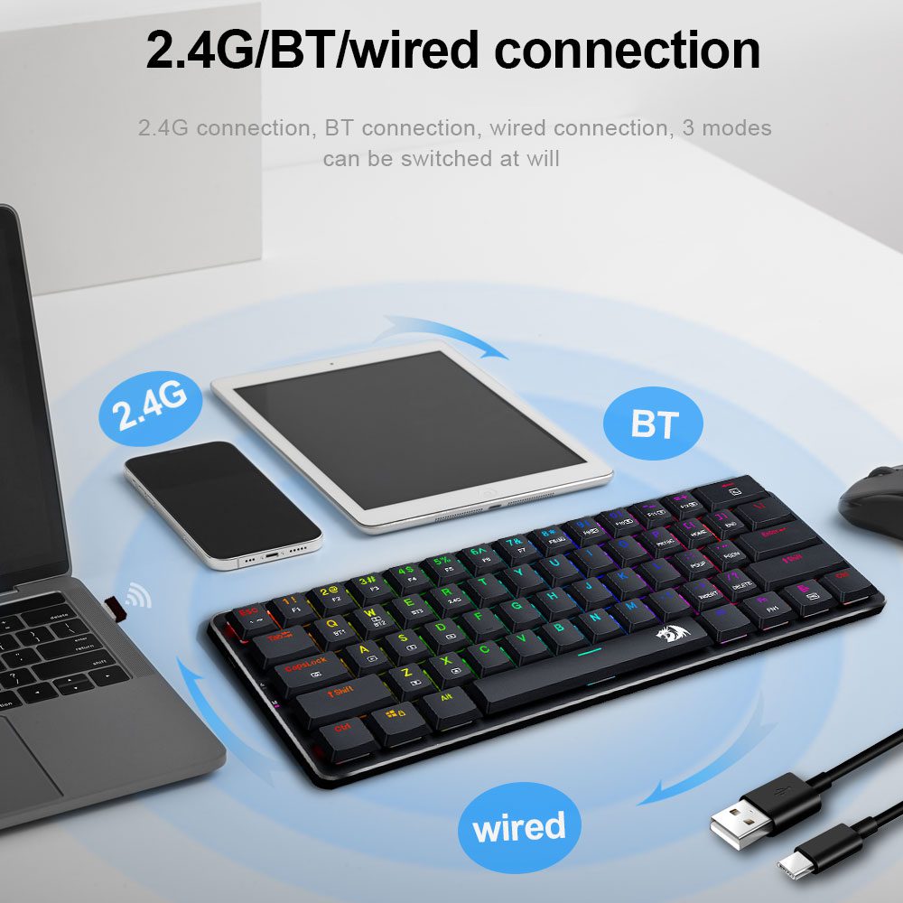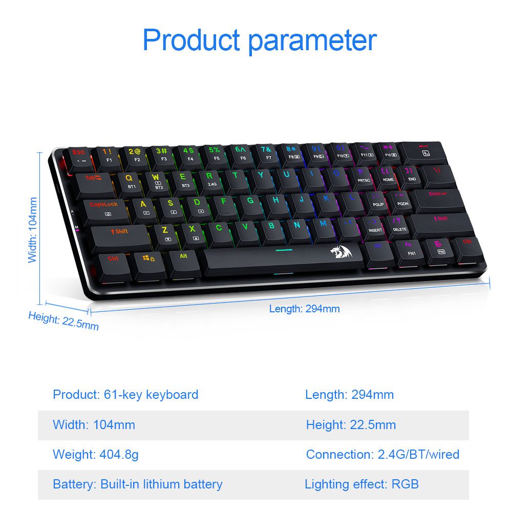 REDRAGON Elise K615P-KBS 60% Super slim RGB Mechanical Keyboard – Bluetooth /wireless 2.4G / USB Wired (3 mode ) connection – 61 Keys – Blue Switches Compute PC