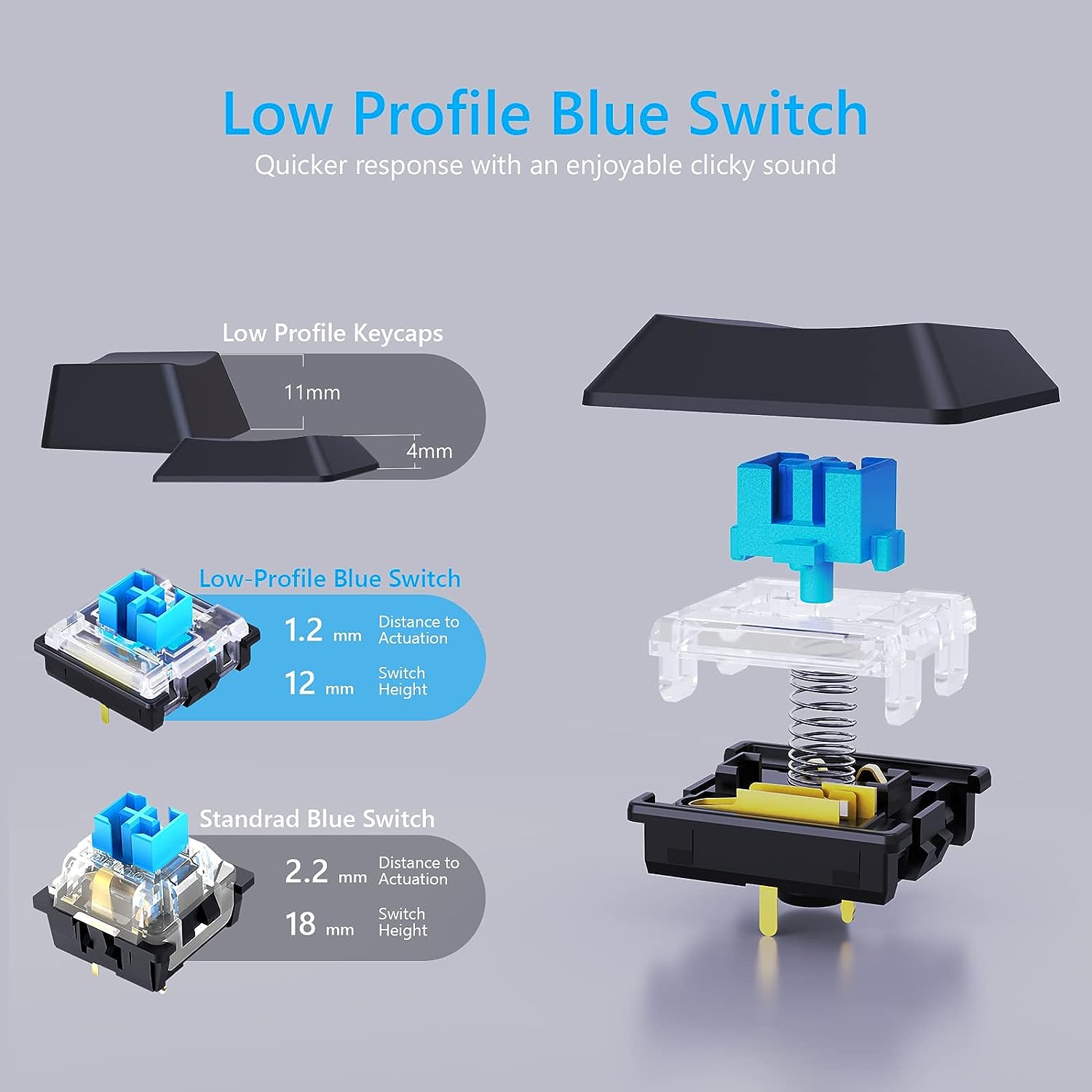 - ✅ Low Profile Mechanical Keys:This 60 percent keyboard features with tactile blue switches that deliver higher accuracy and quicker response with an enjoyable clicky sound, providing you with effortless operation for typing or gaming.