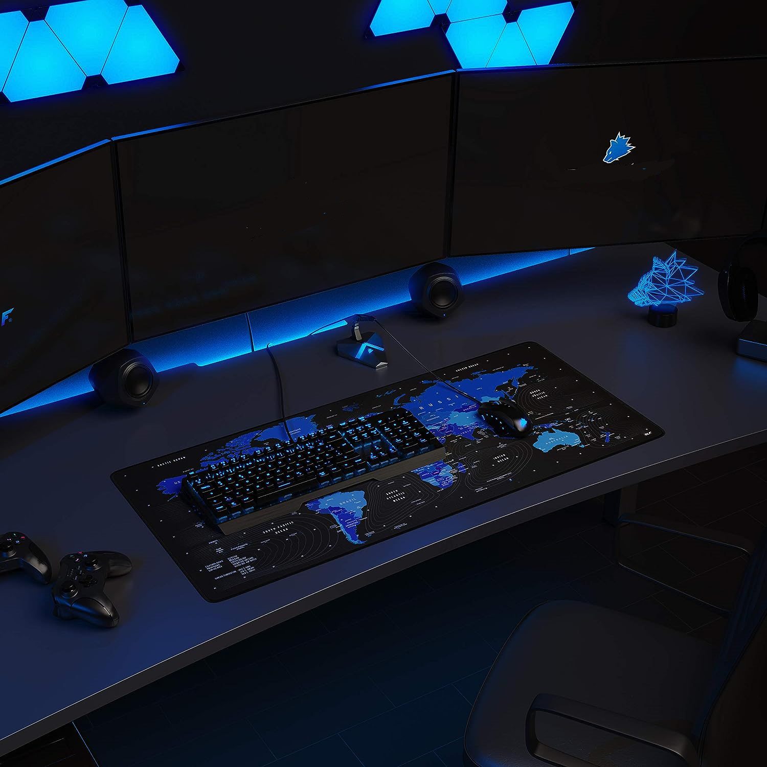 BLUE World Map Gaming Mouse Pad – 90 X 40 cm – Anti Slip Base – Speed Edition