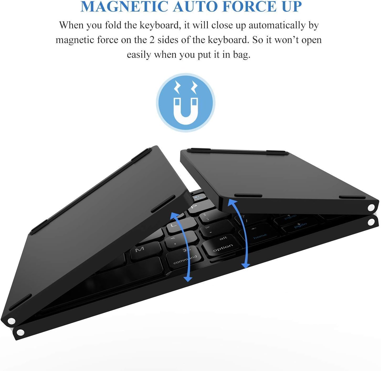 - 【Sturdy Hinge and Durability】Equipped with multiple premium aluminum alloy hinges that provide greater stable strength to folding keyboard. Excellent stiffness Durable and sturdy to use, life up to 50,000 times. High-quality magnetic suction, keyboard folded in a pocket or briefcase will not easily open!