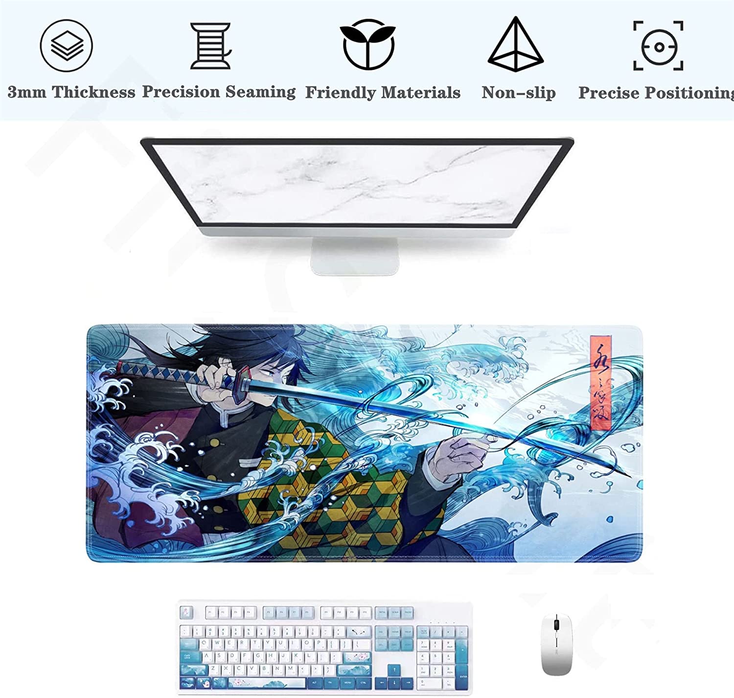 Demon Slayer Gaming Mouse pad , Kimetsu No Yaiba Gaming Mouse Mat Natural Rubber Large Mouse Pad Waterproof Anti-Slip Keyboard Mat Desk Mat for Computer Game – XL Size Anti Slip Base – Speed Edition | 70 X 30 cm