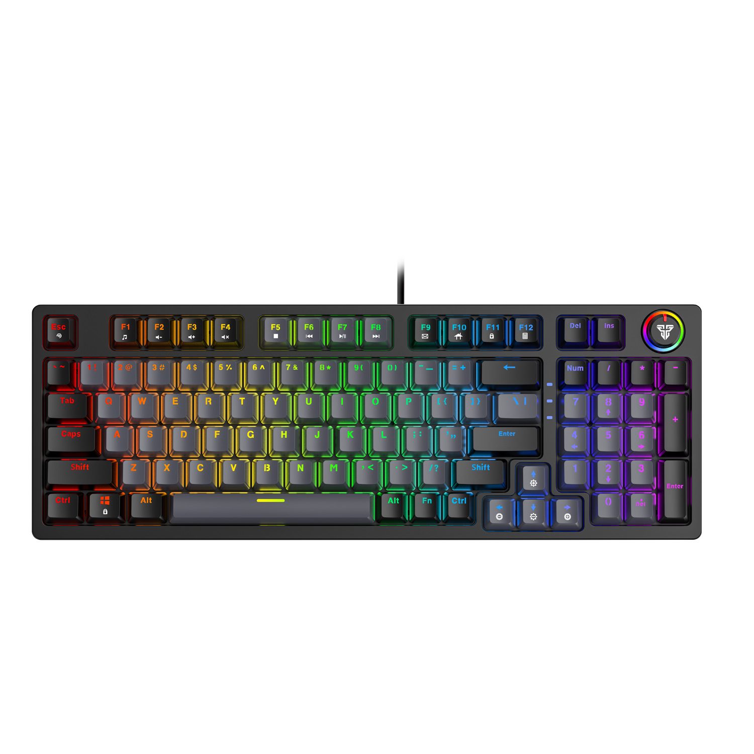 FANTECH ATOM96 MK890 Gaming Keyboard RGB Mechanical – Blue Switch – Full Size Form Factor – Double Injection Keycaps – 10 Lighting Effects – Full Keys Anti-Ghosting – Dedicated Volume Knob – Adjustable 2-Step Height | Black