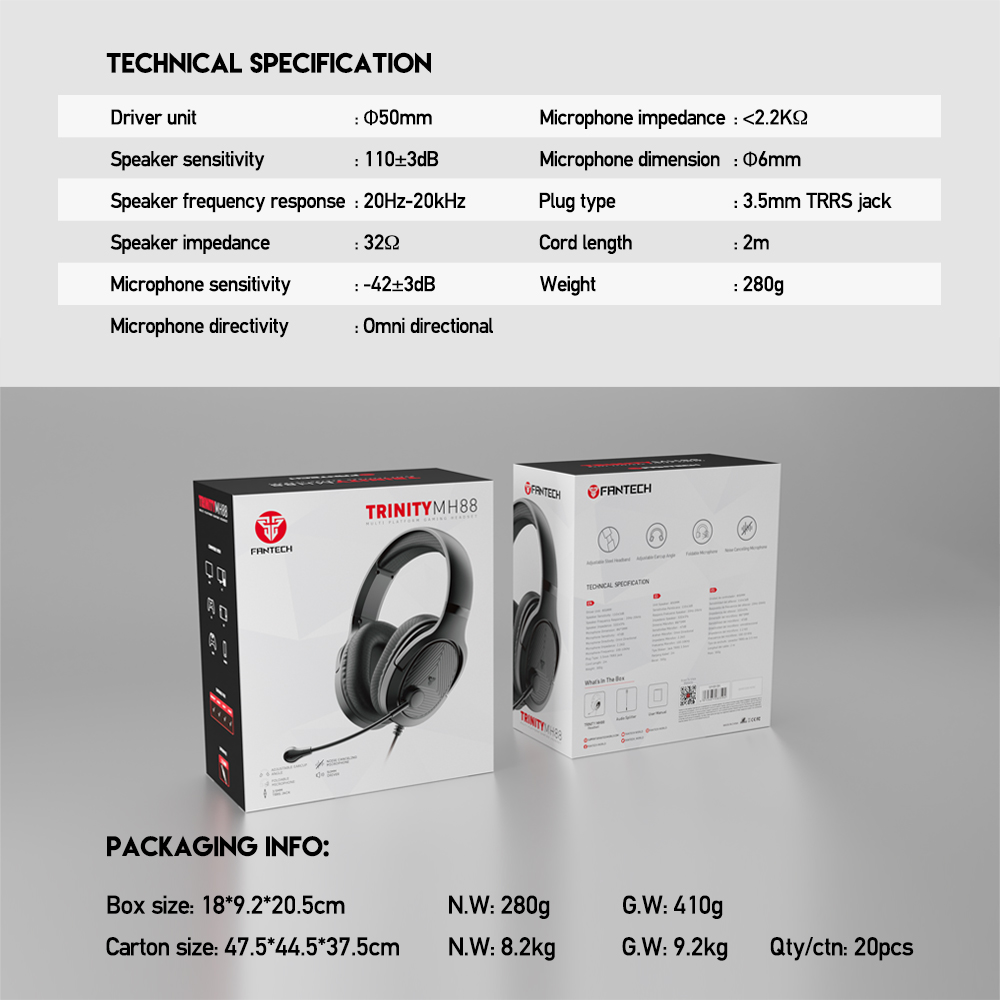 FANTECH TRINITY MH88 Gaming Headset 3.5mm Jack For Multiplatform | Black
