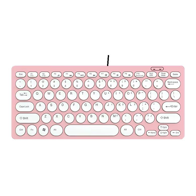 Jertech DK500 Keyboard , USB Mini Silent Office Comfort keyboard Wired – 78 Slim Round keycap – Arabic & English | Pink