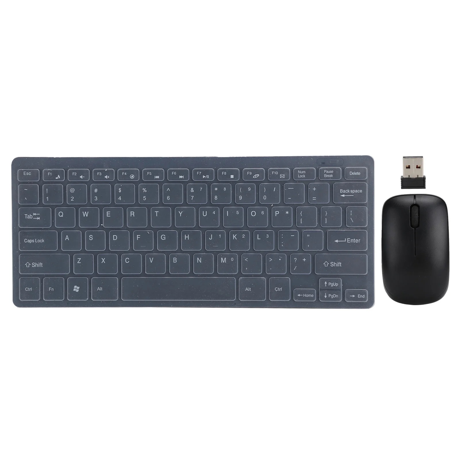 K03 Mini Wireless Combo Keyboard Mouse Slim (share USB receiver) with Free Keyboard Silicone Cover – 10m / 2.4GHz connections – Arabic / English 78 Key Keyboard , 1000DPI Optical Mouse – Plug & Play – (2 x AAA Battery Not Included ) | Black