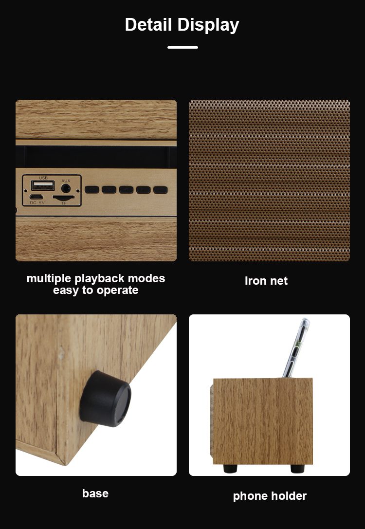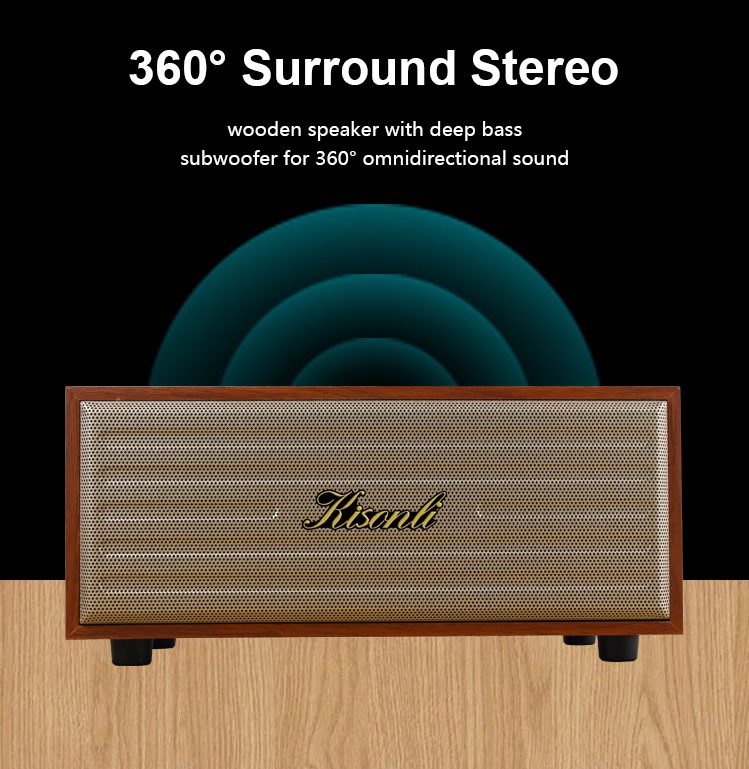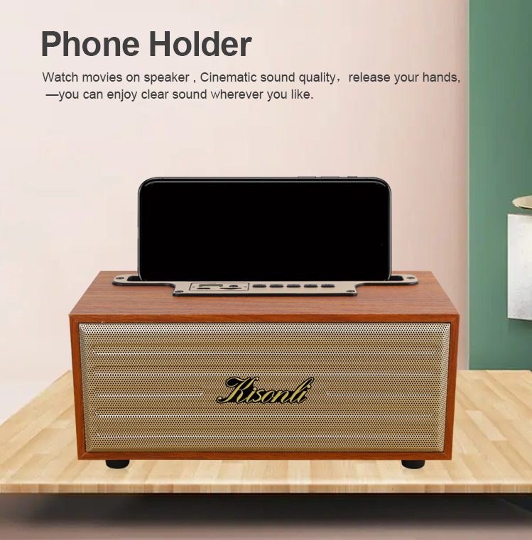 Kisonli G12A Bluetooth Speaker , Retro Portable Wireless 360 Degree Stereo Sound 5W (Music Power 8W) – With Mobile Holder – AUX Audio Input / TF card / USB Playback – 1200mAh Battery (2-4 hours ) chargeable DC-5V | Wood