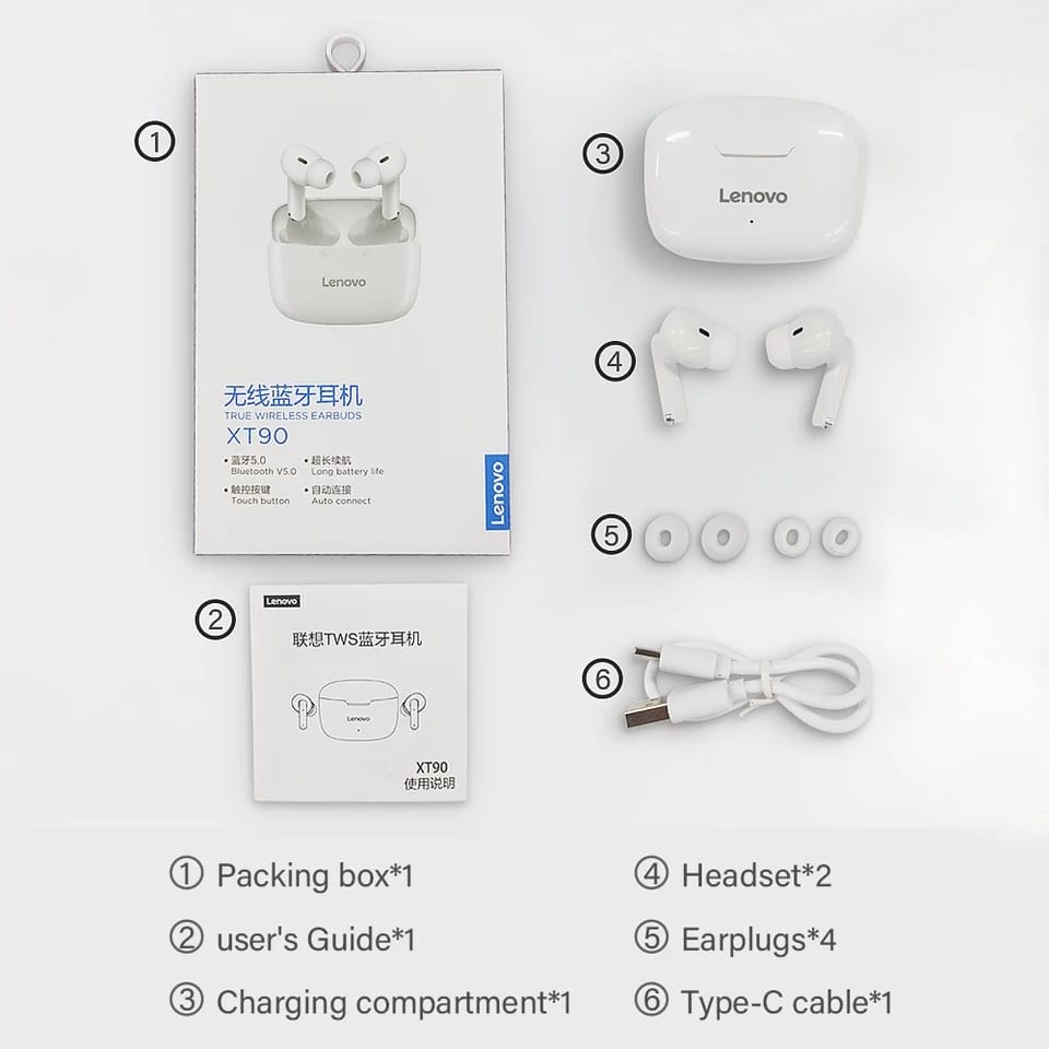 Lenovo XT90 TWS Earbuds – HD Talking BT 5.0 – 20 Hours / 300mAh – IP54 Waterproof – Touch Control – Type C