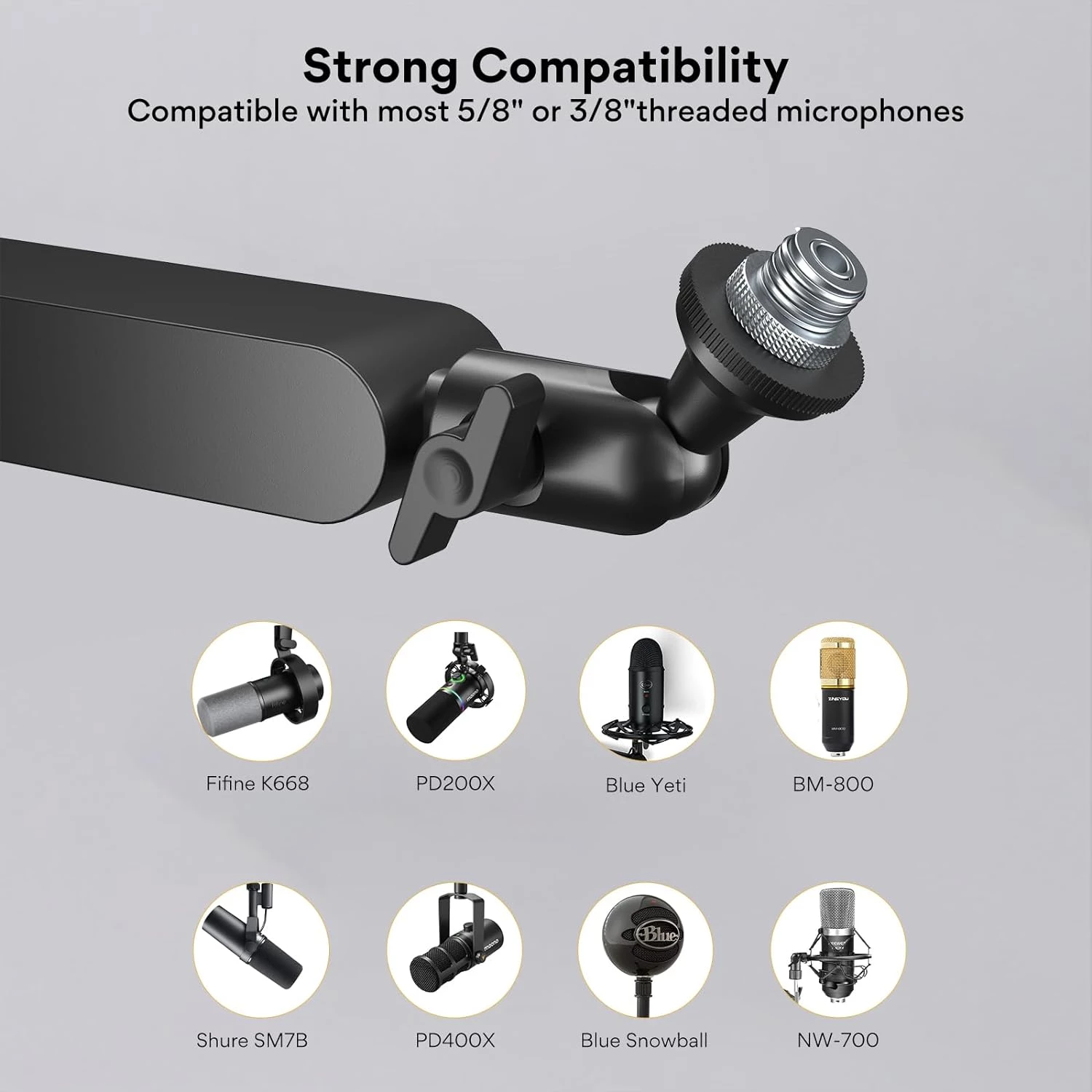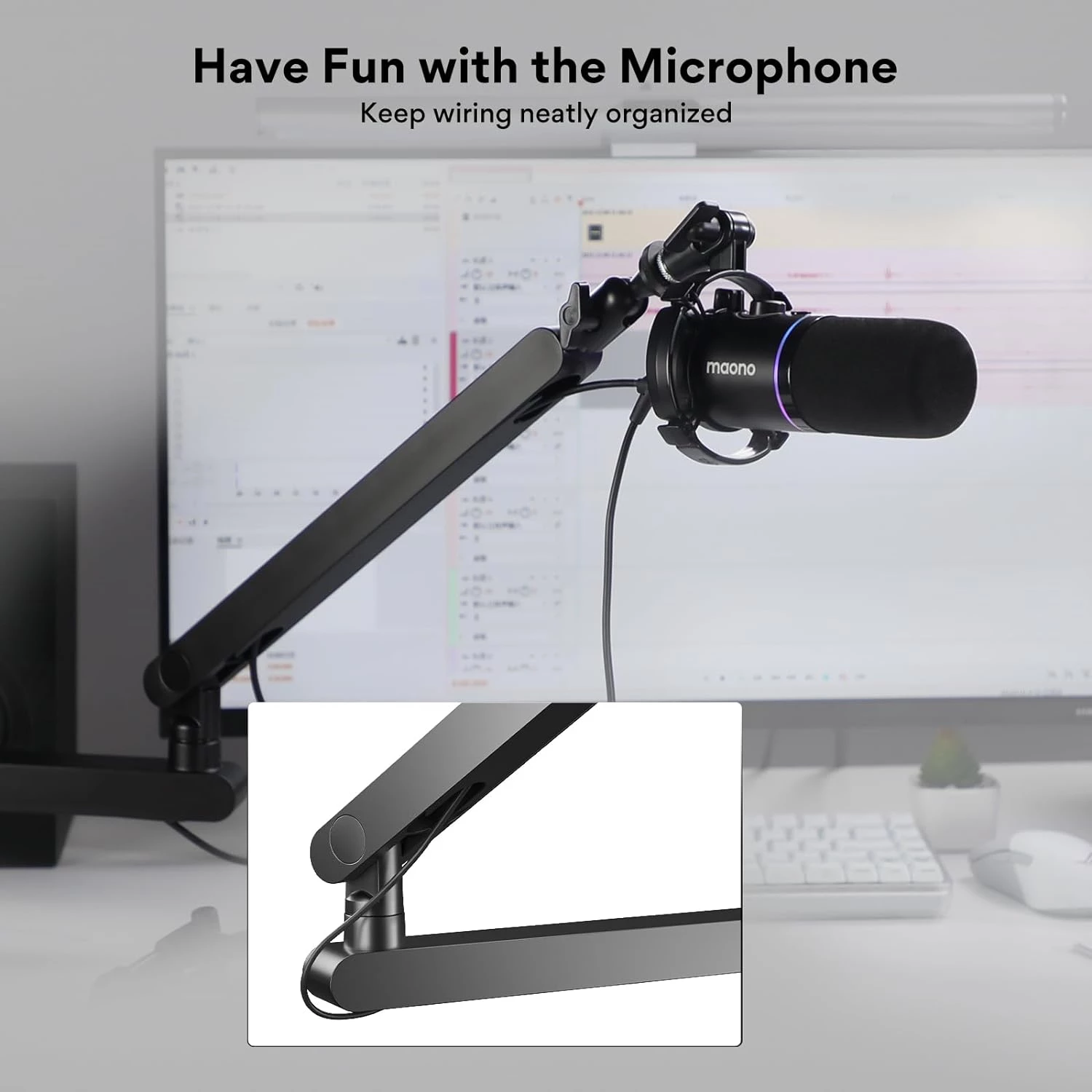 - Built-in Cable Management: Say goodbye to tangled cords and cluttered workspace. The mic boom arm features built-in cable management so you can reduce clutter on your desk and keep cables neatly out of sight. Enjoy a clean and professional appearance while making unhindered adjustments