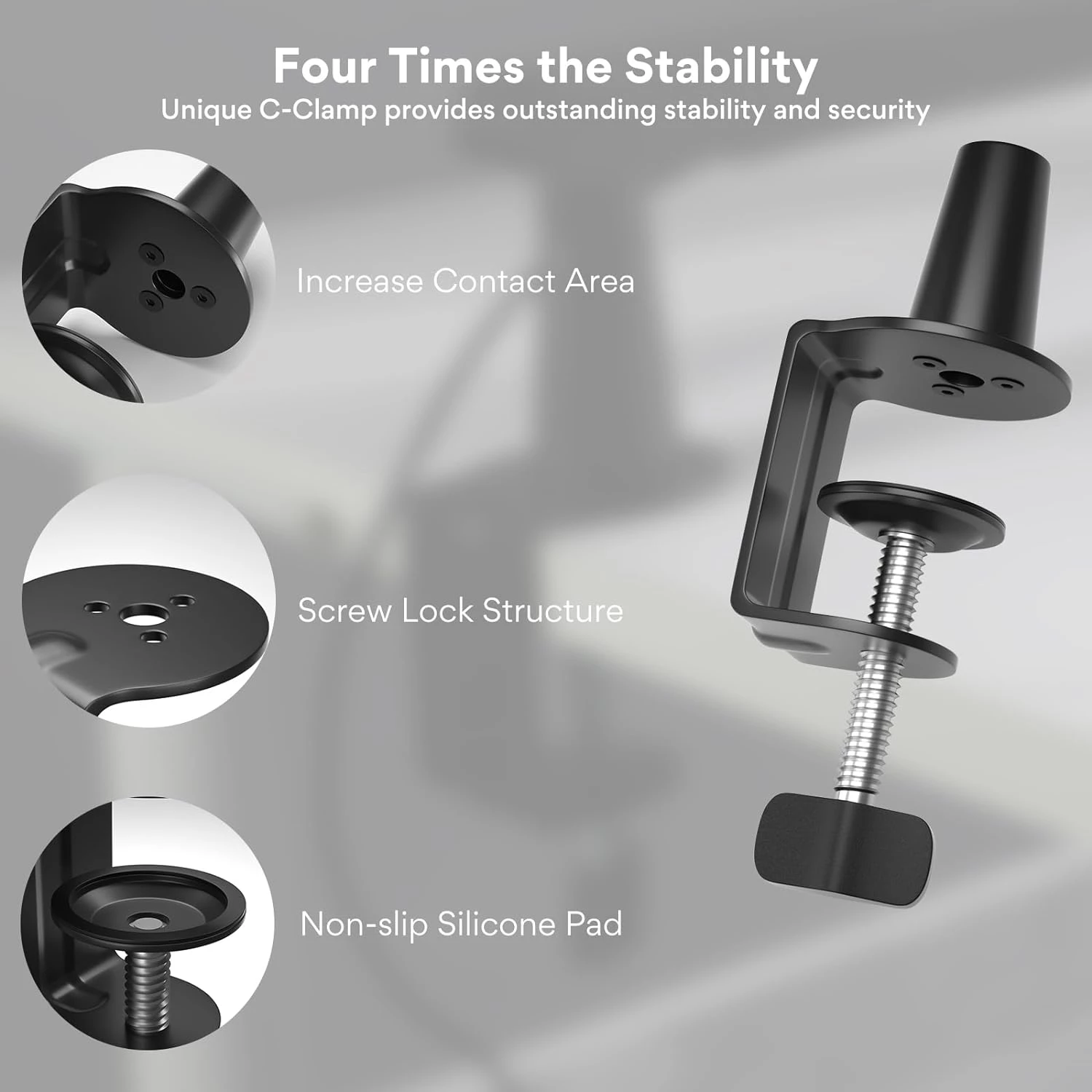 - Simple Installation: Get your workstation set up quickly and easily. The Maono microphone arm can be mounted to your desk (up to 2.2″ thick) using the heavy-duty C-clamp or a secure grommet mount. No extra tools are required for installation. Plus, the folding arm design allows for compact storage when the stand is not in use