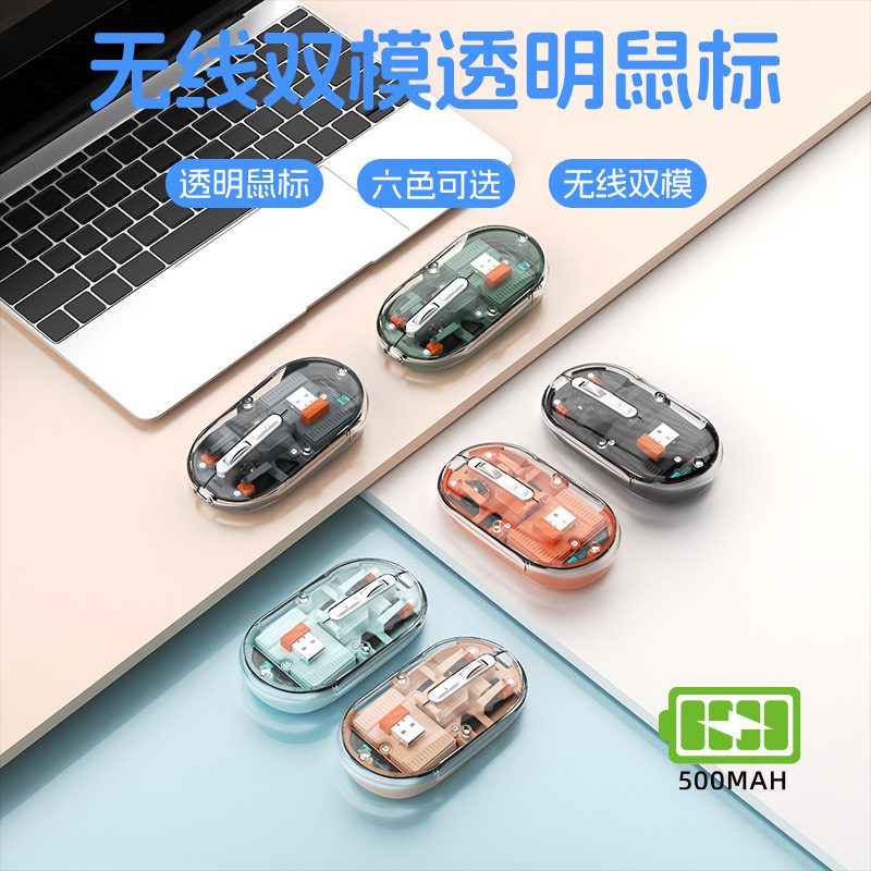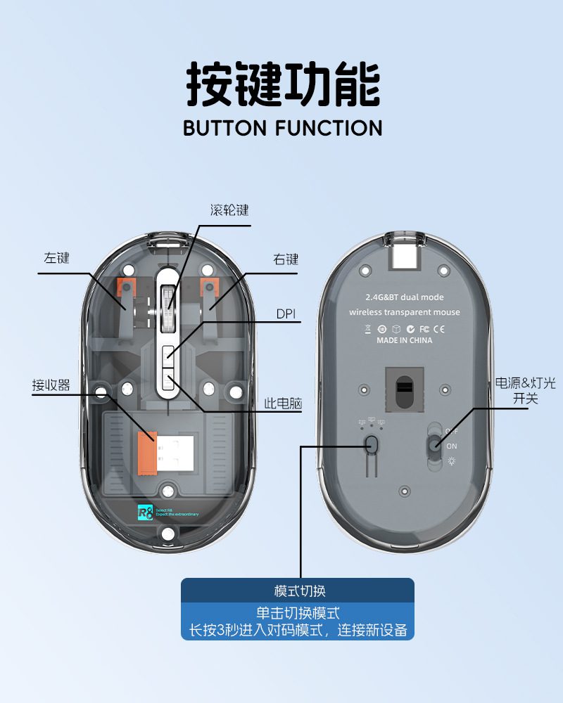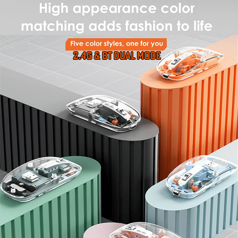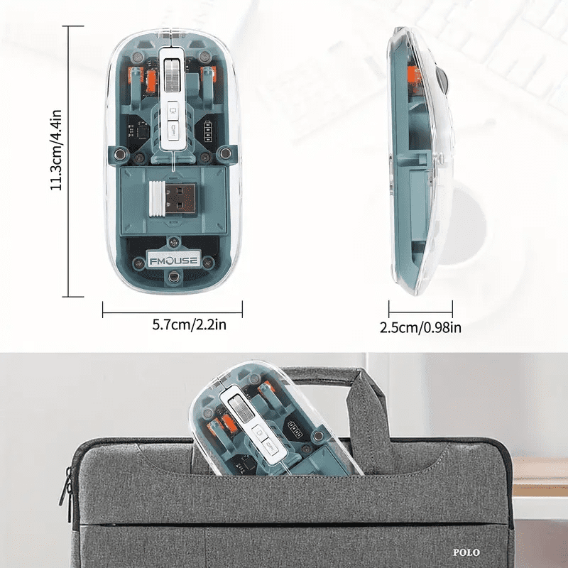 R8 1766 Rechargeable Transparent Dual-Mode Mouse – Blutooth / 2.4G Wireless Connection – Silent Clik – 6 Buttons – Power Saving on/off button – 1600DPI Optical Sensor – 500mAh Battery – Lightweight Ergonomic Design – Effective distance 15m For Office Business | Green