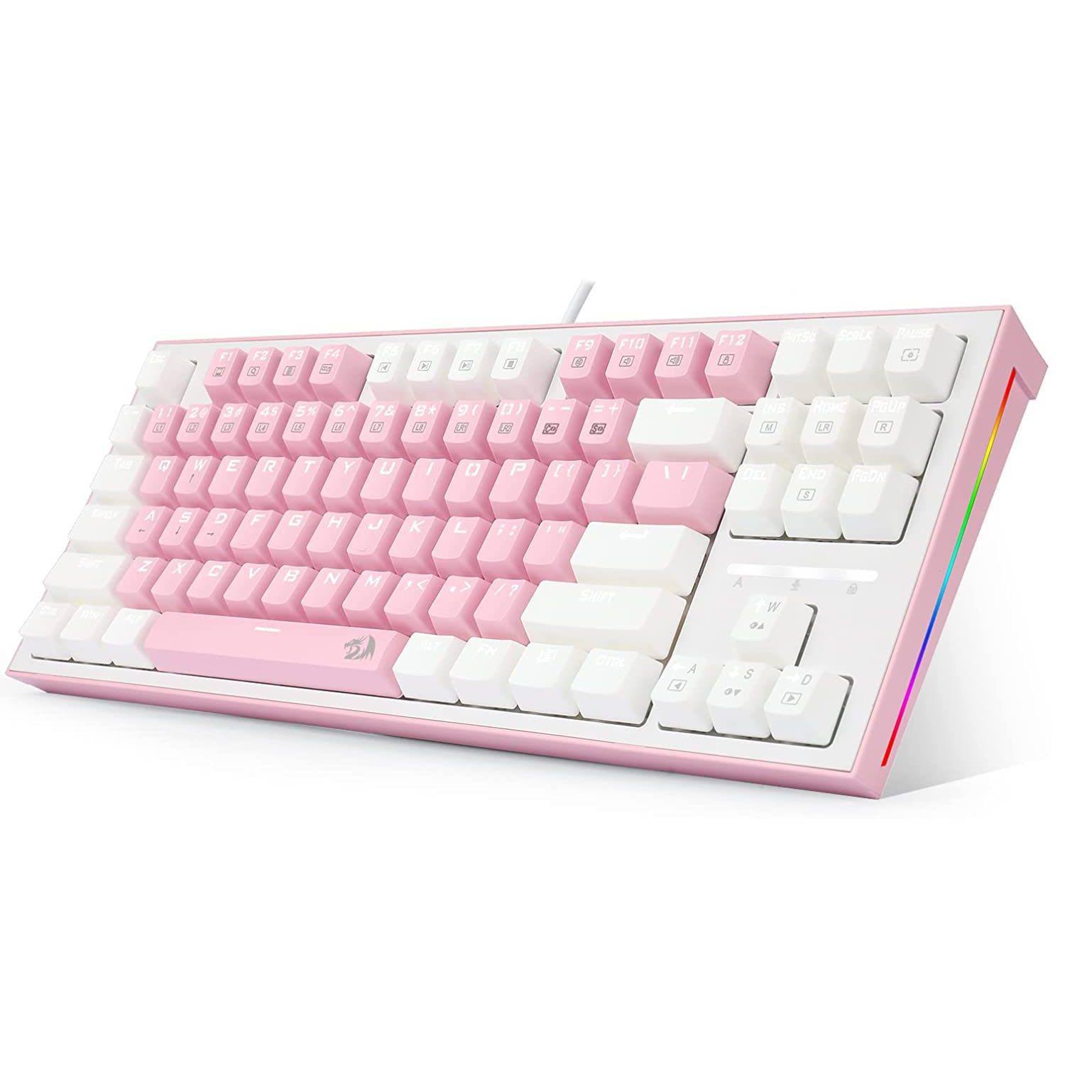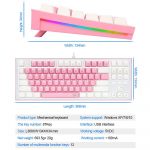 REDRAGON K611 BES Keyboard TKL Gaming Mechanical – Dual Color Keys White Backlighting and Side RGB Light – Blue Switch | Pink / White ( K611-P1B)