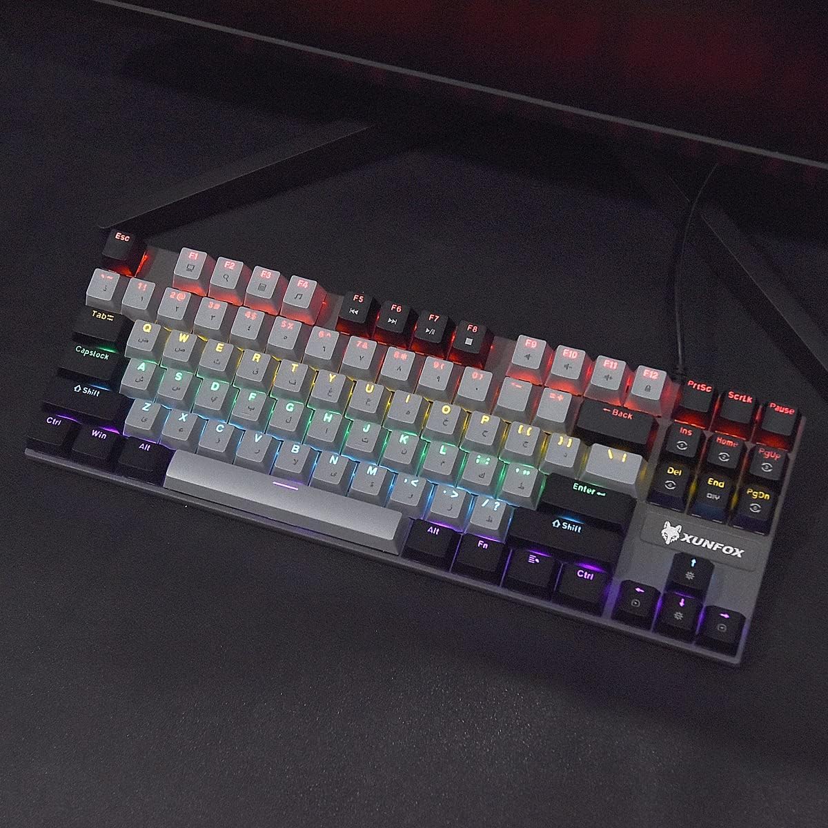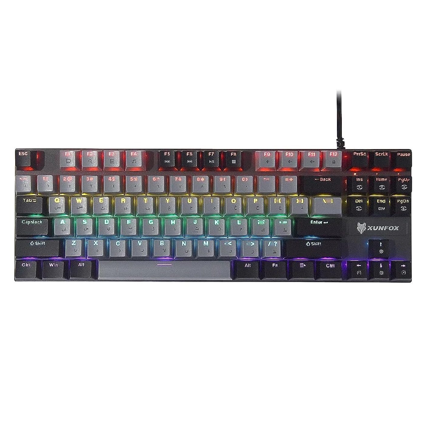 Xunfox K80 Rainbow TKL Gaming Mechanical Keyboard – AR / EN 87 Key – Blue Switch | Grey / Black